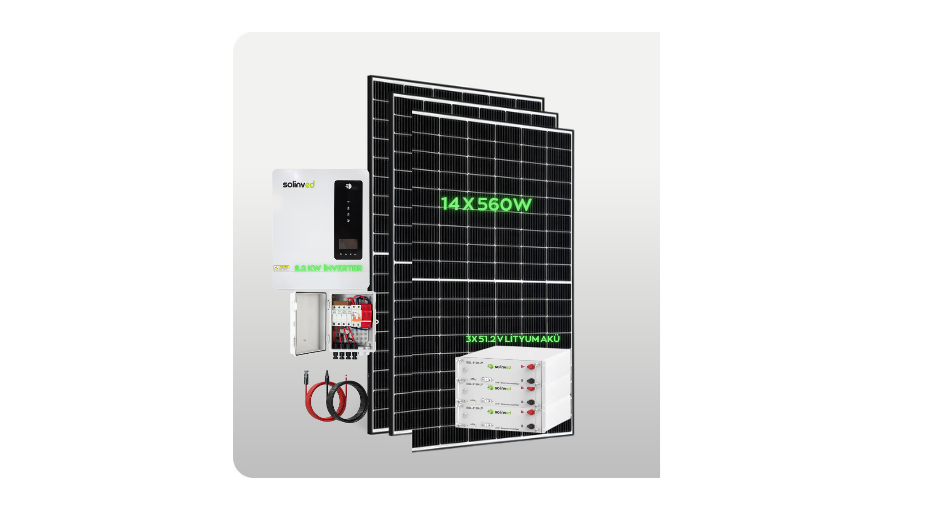 14 Adet 560W Güneş Paneli + 8.2 kW Solinved Akülü İnverter + 3 Adet 52.6V Solinved Lityum Akü ile Şebekeden Bağımsız Enerji