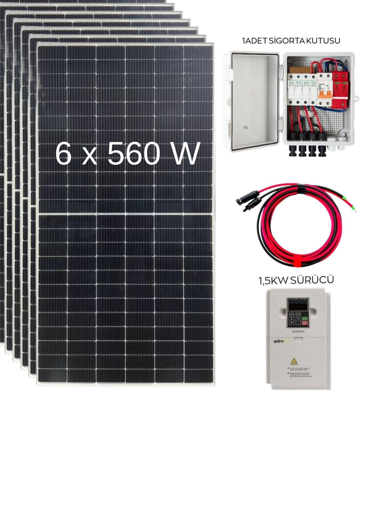 - 6 Adet 560W Monokristal Halfcut Panel: Yüksek güç çıkışı ve dayanıklı yapı.