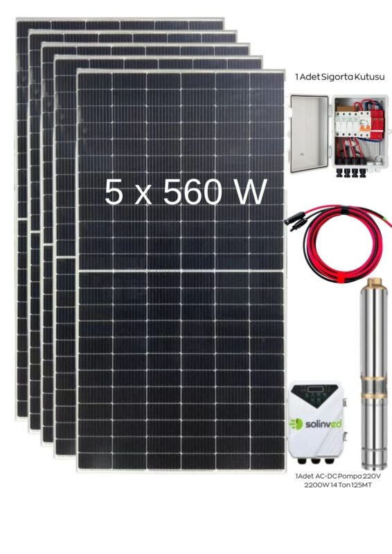 18,5 kW gücünde 25 HP motorlar için özel olarak tasarlanmış bu Trifaze Tarımsal Sulama Paketi, güneş enerjisinden maksimum verim alarak tarlanızda sıfır elektrik maliyeti ile sulama yapmanızı sağlar. Paket içerisinde 40 adet 560W monokristal panel ve tam uyumlu sulama sürücüsü (inverter) yer almaktadır.